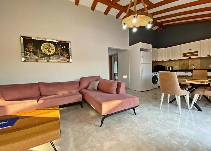 Likya Akik 2+1 Villa, Ozel Havuzlu de 65 m^2 est à moins de 15 minutes du Musée de Fethiye et à moins de 10 minutes en voiture de la Plage d'Ölüdeniz. La villa propose des chambres avec une TV avec chaînes satellitaires et une climatisation.